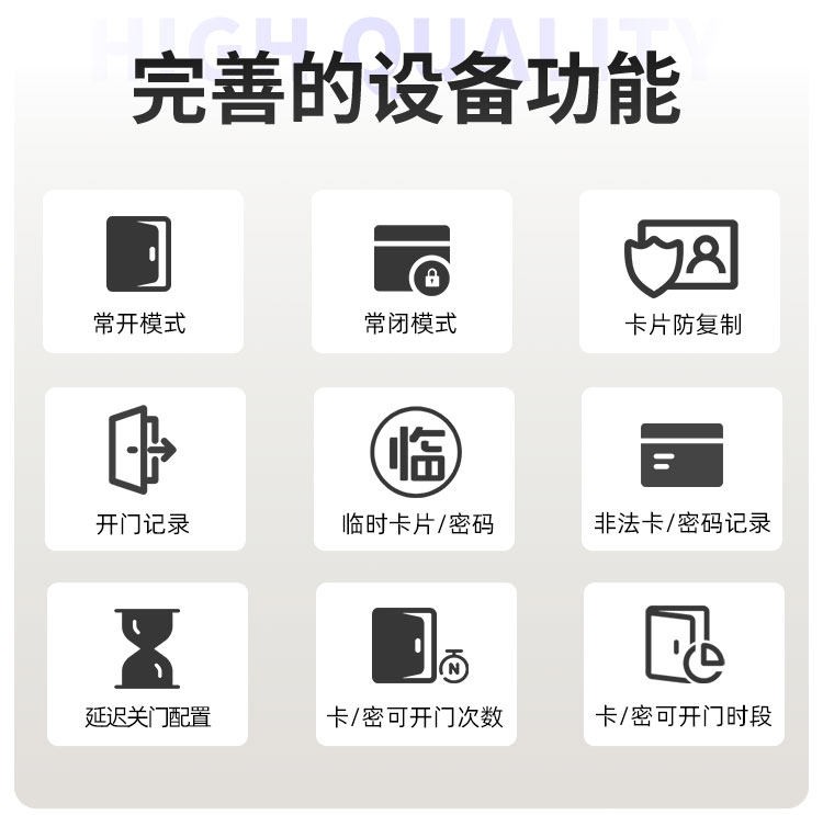 广州这款智能门锁提供室内门锁和防盗门锁两种选择,其中室内门锁尺寸为 2806521mm,适配 5050 锁体;防盗门锁尺寸为 3657021mm,适配 6068 锁体,可满足不同场景的安装需求。它采用铝合金一体成型搭配钢化玻璃面板打造,兼具坚固耐用的品质与简洁美观的视觉效果。门锁支持蓝牙无线通讯,解锁方式丰富多样,密码、卡片、蓝牙、钥匙四种方式随心选择,满足不同使用习惯与应急需求。其工作温度范围为 - 20~70℃,能适应多数地区的气候条件,采用碱性电池供电,安装更换便捷,是兼具安全性与实用性的门锁选择。
